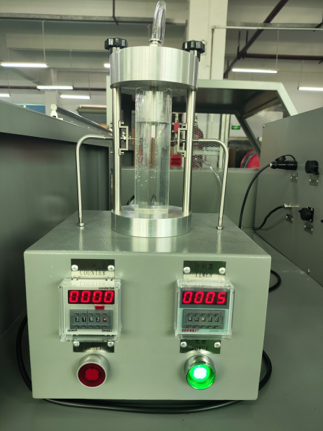 BXY-ABC-01型自動(dòng)氣泡計(jì)數(shù)器常用于閥門、密閉容器、設(shè)備管路等氣體密封試驗(yàn),測試被測對(duì)象的泄漏率。自動(dòng)氣泡計(jì)數(shù)器采用最新光學(xué)技術(shù),具有精度高,計(jì)數(shù)穩(wěn)定等特點(diǎn);配有數(shù)字計(jì)數(shù)器和定時(shí)器,設(shè)定時(shí)間內(nèi)完成氣泡計(jì)數(shù)。具備自動(dòng)計(jì)數(shù)功能,數(shù)據(jù)接入數(shù)據(jù)采集系統(tǒng),軟件顯示氣泡數(shù)并可自動(dòng)判斷是否合格。具有安全閥預(yù)充氣功能,可以對(duì)安全閥出口腔進(jìn)行預(yù)充氣,從而提高計(jì)數(shù)精度和工作效率。